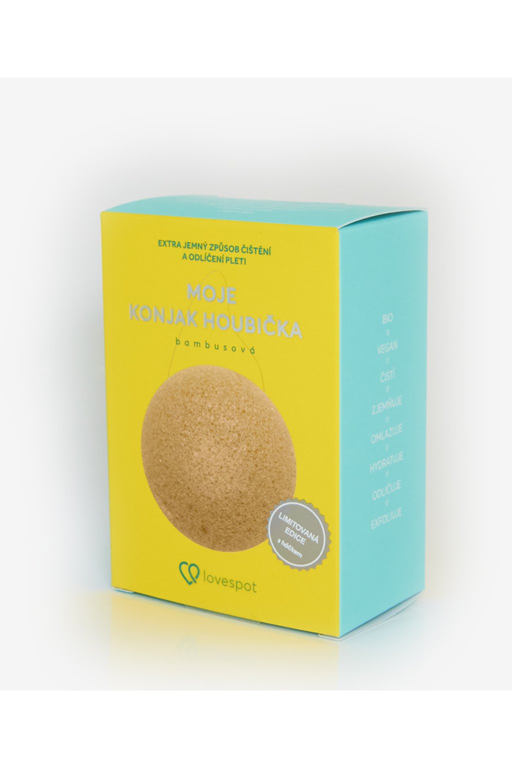 Nejjemnější houbička na světě je ideální pro každou pleť, i pro tu nejcitlivější pokožku. Vyrobena je z přírodního rostlinného vlákna konjak, bez chemie a dalších přísad. Hloubkově čistí, zjemňuje póry, zanechává pleť zářivou a omlazenou a připravuje pleť na další péči. Přirozeně hydratuje a výsledky vidíte již po jednom použití. Je možné používat bez dalších přípravků na čištění pleti nebo s nimi, je to jen na vás.